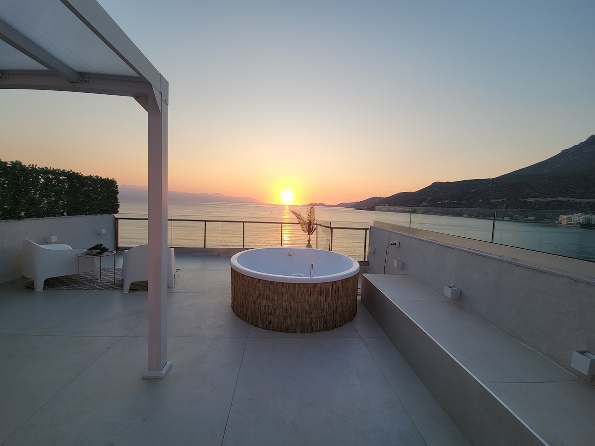 Stilvoller Rückzugsort auf dem Dach • Whirlpool • Loutraki Beach