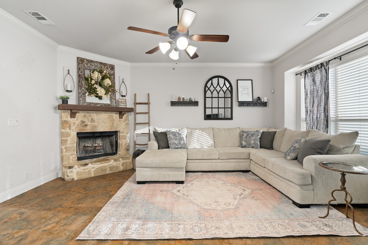 Komm, hab Spaß und sorge mit der ganzen Familie in unserem Haus mit 4 Schlafzimmern und 2 Badezimmern in der Nähe des Flughafens DFW. Wir haben zwei Spielzimmer mit vielen Spielen, die für jeden etwas zu bieten haben. Das Spielzimmer mit Billardtisch und Tischtennisplatte verfügt über eine Klimaanlage. Wir haben auch einen erstaunlichen Sitzbereich im Hinterhof mit Fernseher, Corn Hole und Whirlpool, wenn es Zeit ist, sich zurückzulehnen und zu entspannen! Genehmigung Nr. STR-24-118.