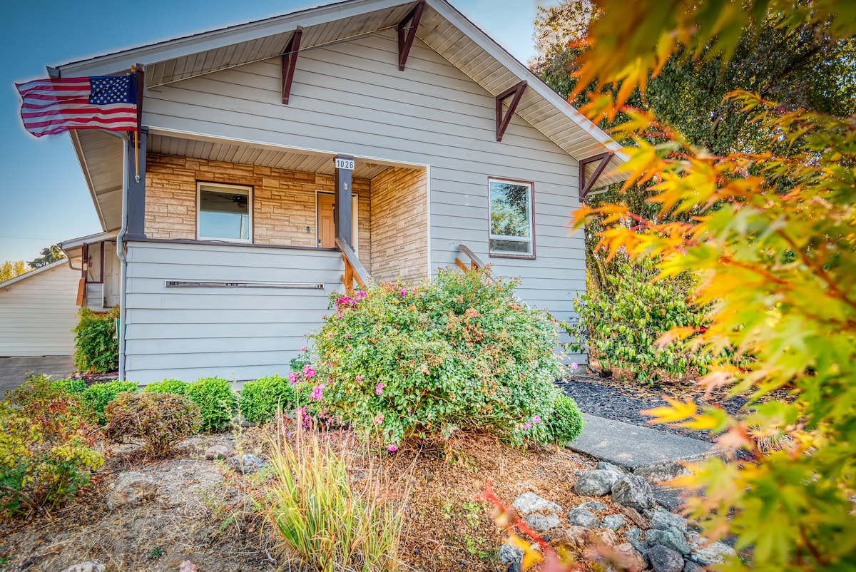 Übernachte in unserem Vintage-Heimatstadt-FAVORITEN – wo Gäste uns immer mit 5 Sternen* für sauber, frisch und komfortabel bewerten. Genieße diesen geräumigen, einladenden und liebevoll eingerichteten Bungalow. Vollgepackt mit praktischen Annehmlichkeiten sowie Parkplätzen abseits der Straße und schnellem WLAN. Wirklich ideal für längere Aufenthalte. Ein gemütlicher Ausgangspunkt zum Arbeiten, Spielen und Ausruhen. In der Nähe von Albany Hospital, Costco und Restaurants/Geschäften in der Innenstadt. Fahre 20 Minuten zur Oregon State Univ. Nah genug für einen Tagesausflug zum Strand, zu lokalen Weingütern oder in die Berge.