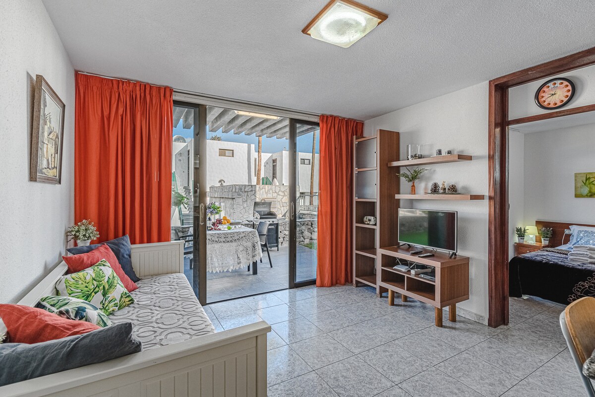 Dieser Komplex liegt 150 Meter vom Eingang zu den Stränden von La Pinta y fañabe entfernt und bietet 3 Pools, eine Bar und einen Wasserspender. Modern eingerichtetes Apartment mit 2 bequemen Betten (je 90 cm) und geräumigem Kleiderschrank. Großzügige Küche mit Einbaugeräten – Herd, Backofen, Mikrowelle. Alle Küchenutensilien und -geräte sind inbegriffen. In der Hütte gibt es ein Schlafsofa, einen Essbereich und einen Fernseher mit internationalen Sendern sowie WLAN. Das Badezimmer mit Dusche ist möbliert und mit einer Waschmaschine ausgestattet. Geräumige Terrasse zum Entspannen.