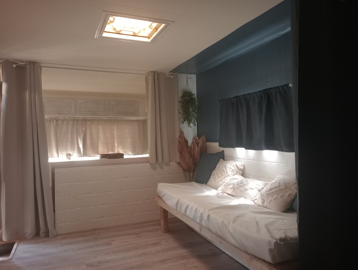 Ich stelle Ihnen Mauricette vor, eine schöne Pflanze von 4 Metern mit ihren klaren Linien. Wenn Sie in den 70er Jahren die Gelegenheit hatten, zu campen, haben Sie es vielleicht schon gekreuzt. Sie war jung und sehr gefragt zu der Zeit, als der Campingplatz boomte. Nach einigen Jahren Ruhezeit hat sie beschlossen, wieder in den Dienst zu kommen. Sie hat sich nicht geändert und wird Sie in die Zeit zurückversetzen. Auf dem Campingplatz "Parc du Château" in Rieux im Morbihan gelegen, wartet sie nur noch auf Sie!