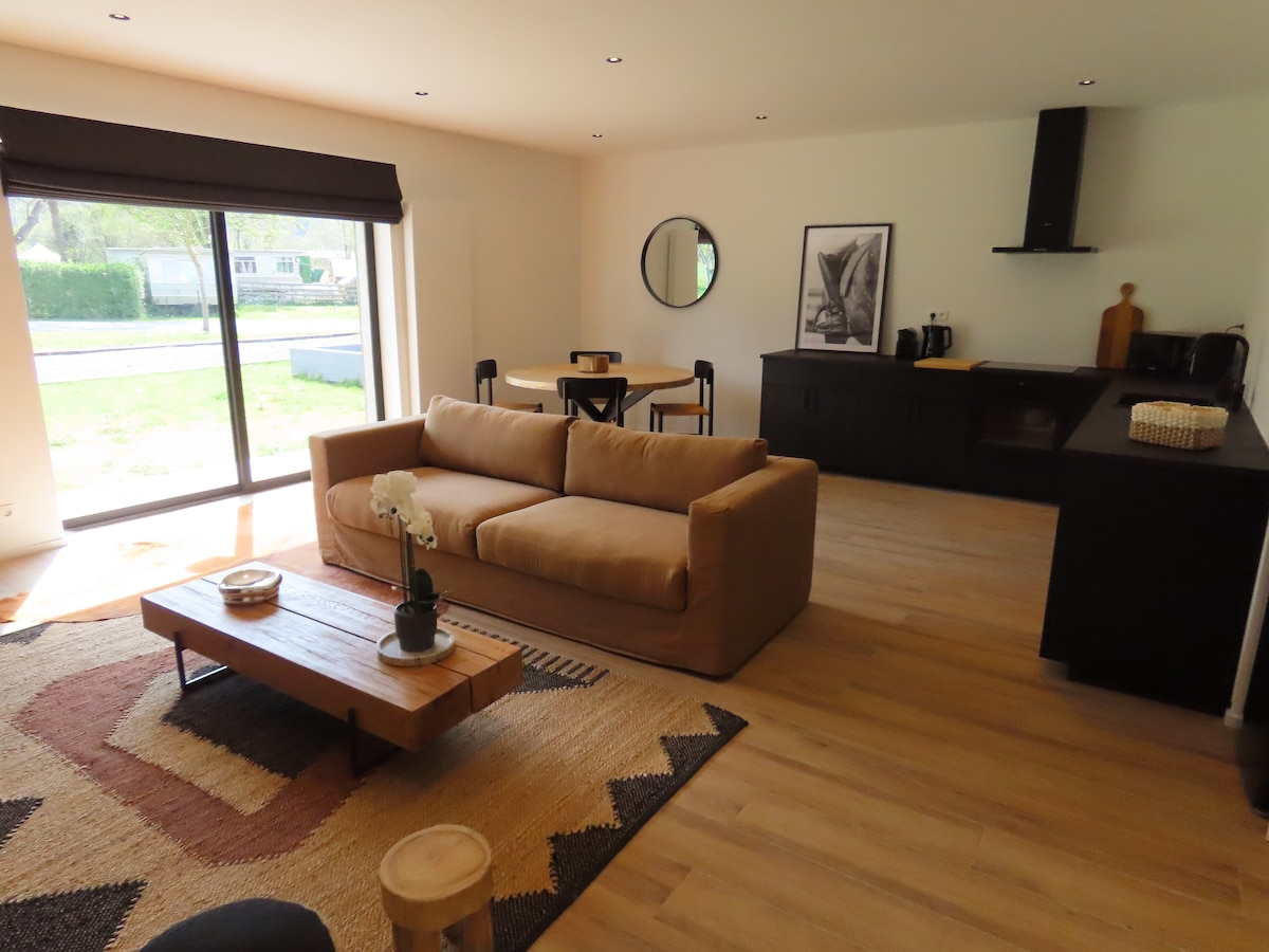 Envie d'une mise a vert? D'un chalet perdu au milieu de nulle part? D'un niveau de finition rarement rencontré dans une location? C'est par ici! Bâti en 2022, notre gîte de 8 personnes ne manquera pas de vous étonner. Le choix des matériaux, l'isolation, l'agencement, sa situation exceptionnelle sont tout simplement uniques en Ardenne. Grâce à notre parc, vous pourrez admirer nos daims depuis le gîte. Nouveauté 2025 : un dispositif de climatisation a été installé.