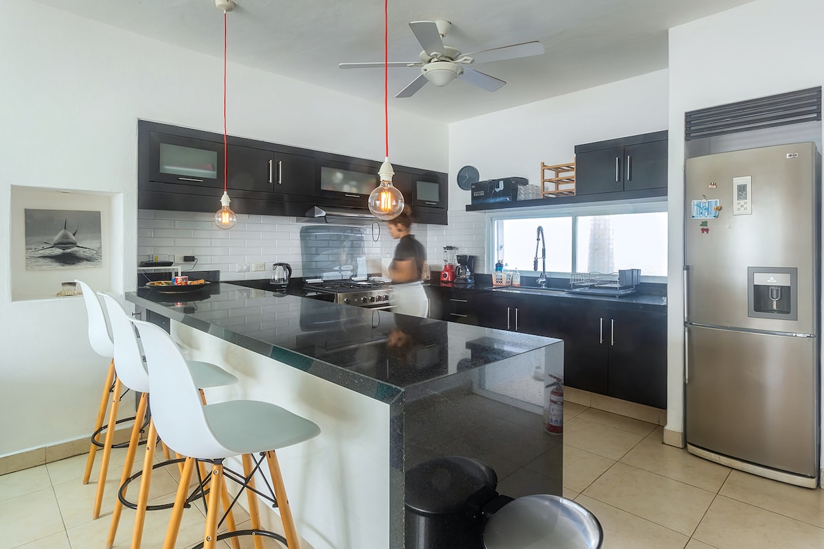 Moderne Wohnung nur für Erwachsene in einer ruhigen Gegend, nur wenige Minuten von der Innenstadt entfernt. Gäste lieben die ruhige Lage und kehren oft für den Tauchpool auf dem Dach, den Grillplatz und die tägliche Zimmerreinigung zurück. Erkunde die Küste mit kostenlosen Fahrrädern oder die nahegelegenen Geschäfte und Cafés. ✔ Pool auf der Dachterrasse ✔ Starlink WiFi ✔ Kostenlose Fahrräder ✔ Voll ausgestattete Küche ✔ Nachtwächter ➕ 7-Eleven nur einen Block entfernt Bonus: 10 % Rabatt auf das Tauchen mit dem erstklassig bewerteten Anbieter Scuba Life Cozumel. Nur ab 12 Jahren.