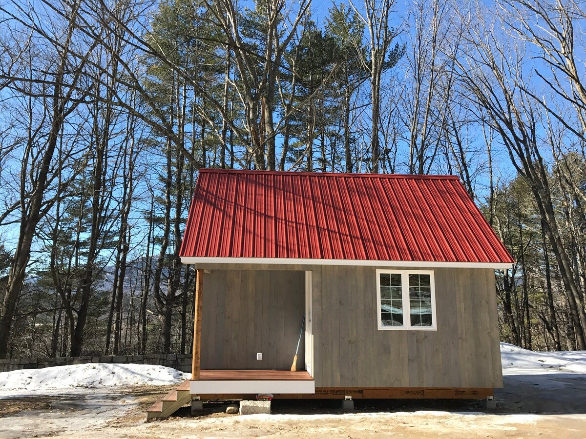 Einfaches, gemütliches 2-Zimmer-1-Badezimmer-Haus, das etwas von der Straße zurückgesetzt ist, neben dem Wald und nur fünf Gehminuten von der Innenstadt von North Conway entfernt – das Beste aus beiden Welten! Auf einer Privatstraße; viele Parkmöglichkeiten in der Einfahrt. Nur wenige Minuten von allem und jedem entfernt! Entspanne dich auf der Terrasse und beobachte die ansässigen Eichhörnchen, Streifenhörnchen und Vögel oder lehne dich am Kamin zurück und genieße das Winterwunderland um dich herum. Bestaune nachts den Himmel voller Sterne. Fliehe in die Berge und fühle dich wie zuhause!