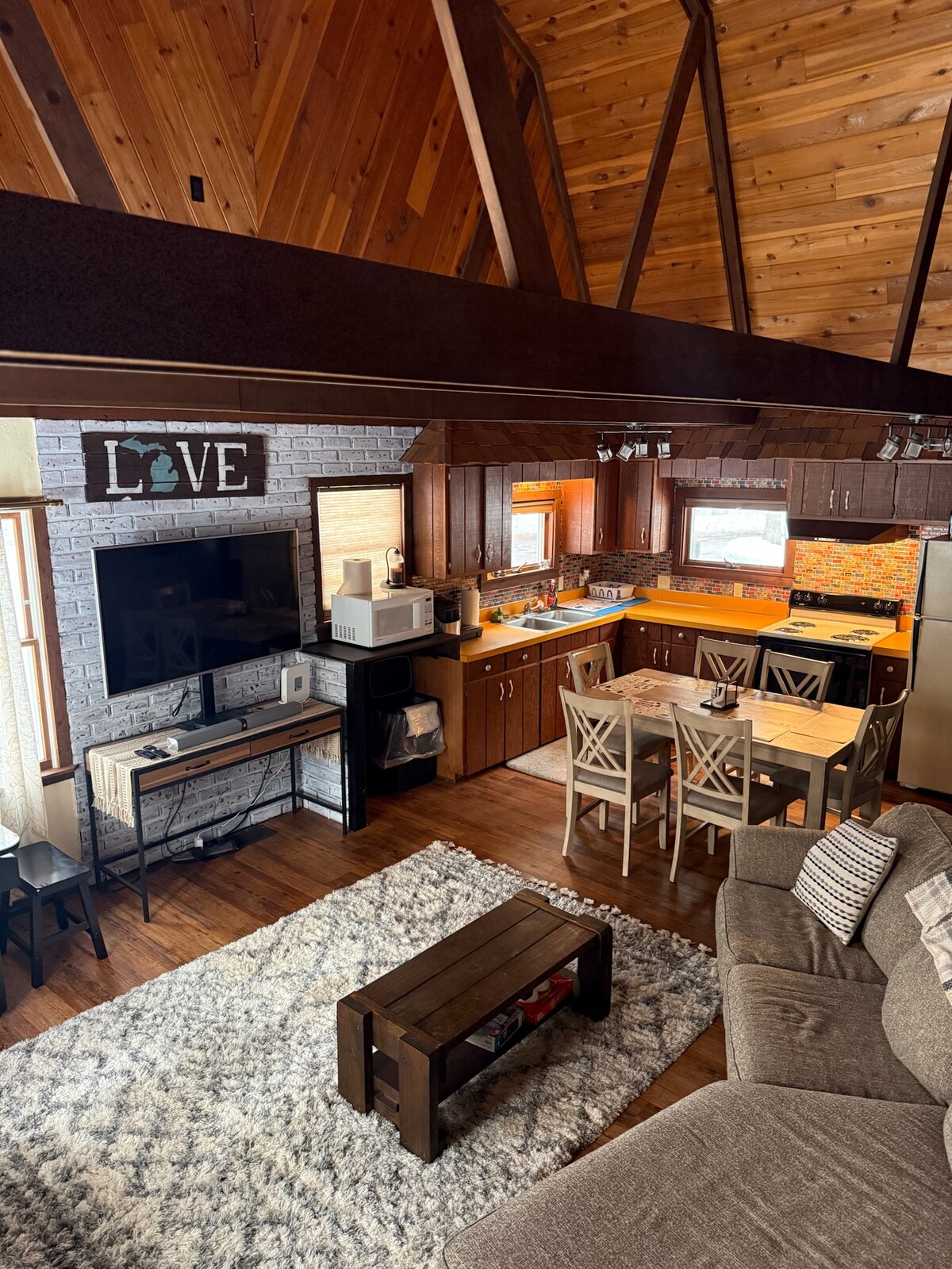 Gemütlicher Rückzugsort im Norden in der Nähe des Lake Margrethe! Abenteuer-Basis-Camp in Grayling! Minuten vom See, ORV/Dirt Bike-Strecken, Schneemobil-Strecken, Langlauf, Radfahren, Wandern und Parks entfernt. Hundefreundliche, familienfreundliche Hütte bietet rustikalen Charme mit modernen Annehmlichkeiten: bequeme Betten, WLAN, eine voll ausgestattete Küche, Feuerstelle, geräumige Terrasse und direkten Zugang zum ORV/Schneemobilpfad. Spaziere zum See. Sauber, gut sortiert, voller Herz & viele Parkplätze für Anhänger & all deine Spielsachen! Social Media @trailtalesandtails