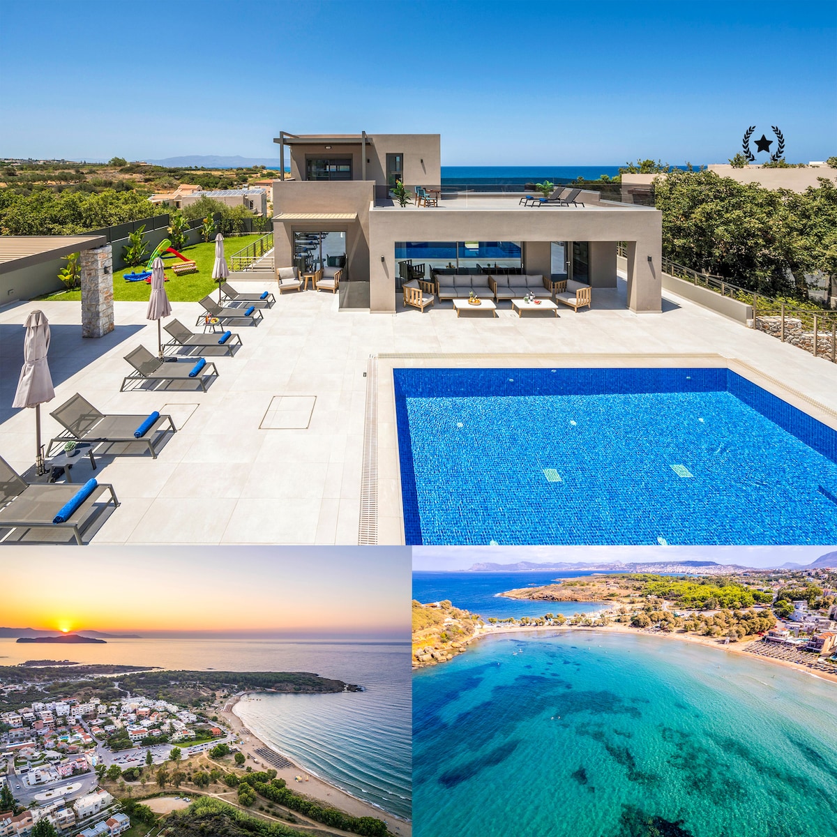 Die außergewöhnliche Villa Rozites Luxury Beachfront Villa ist ideal für unvergessliche Urlaubserlebnisse und bietet Platz für bis zu sechs Gäste. Dieser elegante Rückzugsort über dem Libyschen Meer verbindet traditionellen kretischen Charakter mit Luxus, Privatsphäre und atemberaubendem Meerblick. Mit Blick auf den Sonnenuntergang bietet die Villa einen Panoramablick auf das Kretische Meer – eine wahrhaft magische Kulisse bei Tag und Nacht.