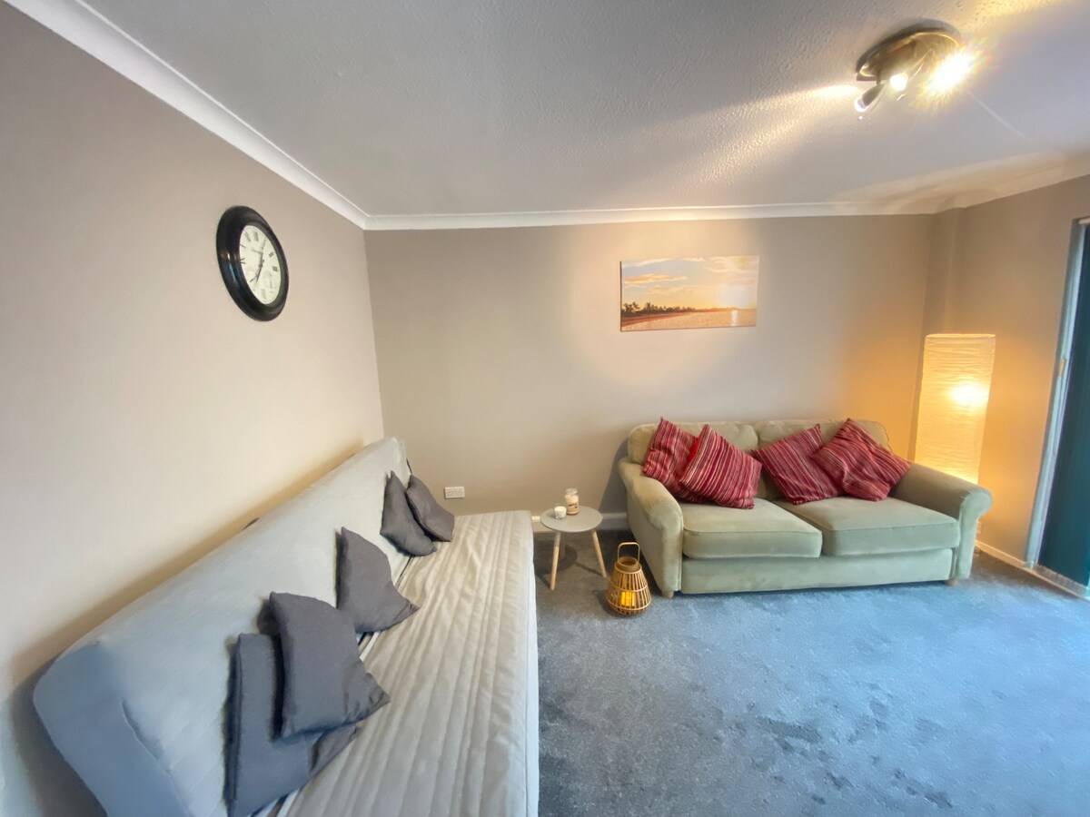 Helle und geräumige 2-Zimmer-Wohnung in Warrington, ideal gelegen mit schnellem Zugang zur M62 und M6 und einfacher Anbindung an Liverpool und Manchester. Die Wohnung verfügt über ein modernes Badezimmer mit ebenerdiger Dusche, einen privaten Garten, einen komfortablen Wohnbereich und eine voll ausgestattete Küche. Bietet Platz für bis zu 6 Gäste mit einem Schlafsofa. Ein Park befindet sich auf der anderen Straßenseite, und Haustiere sind willkommen, was es ideal für Familien, Geschäftsreisende und längere Aufenthalte macht.