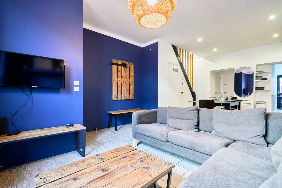 Elegant 120 sqm house at the gateway to Vieux Lille • 10 min walk • 100 m from all shops • 7 min from the tramway • Quiet & pleasant street Ideal for group stays • 5 refined bedrooms • 5 to 9 flexible sleeping arrangements • 2 bathrooms & 2 toilets • Bright, spacious and open-plan living area Warm and inviting living space • Fully equipped open kitchen • Large dining area with table for 10 guests Cozy and intimate outdoor patio Experienced host since 2016 (SymbioHome Lille Centre)