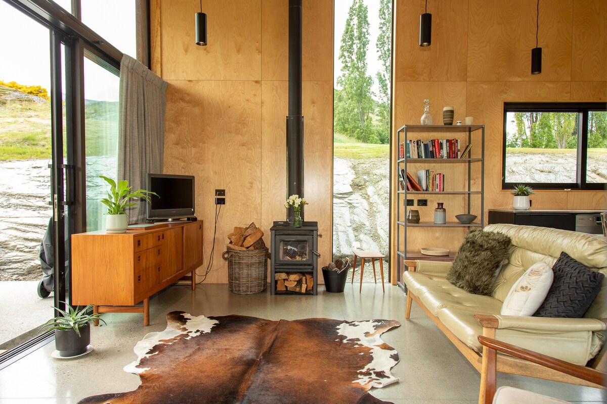 Wir heißen dich herzlich willkommen, in einem schönen Stück Paradies zu übernachten! Unser architektonisch gestaltetes kleines Haus der preisgekrönten Architektin Anna-Marie Chin liegt eingebettet in einen wunderschönen, freiliegenden Schieferfelsen in einer atemberaubenden Landschaft. Es gibt 3 Hektar Land zum Streifen und die Aussicht vom Land ist atemberaubend! Die Lounge verfügt über nach Norden ausgerichtete, hoch abgewinkelte Fenster, die den ganzen Tag Sonne ermöglichen und einen atemberaubenden Blick auf die Hügel dahinter und die wunderschöne Landschaft von Central Otago bieten. Von den westlichen Schiebetüren und dem eingebauten Fenstersitz hast du einen atemberaubenden Blick auf die Remarkables. Der Queenstown-Wanderweg befindet sich direkt vor deiner Tür, sodass es ein fabelhafter Ort zum Wandern und Radfahren ist. Komm und überzeuge dich selbst!