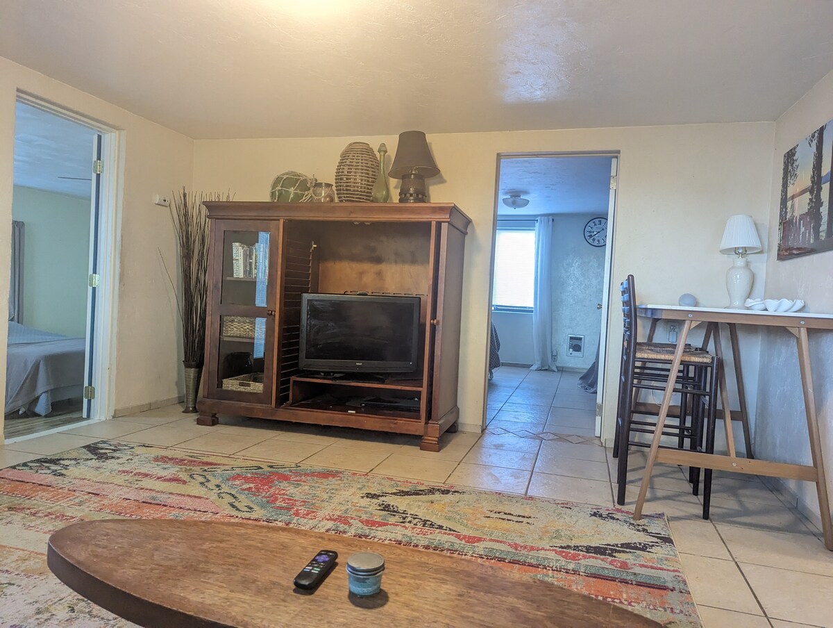 Nimm die ganze Familie mit in diese tolle Unterkunft mit viel Platz für Spaß und Unterhaltung. Wir begrüßen dich in unserer Stuck-Oase in der Hochwüste! Zwei geräumige Schlafzimmer mit Wohnzimmer, voll ausgestatteter Küche und Waschküche sowie Badezimmer mit riesiger ebenerdiger Dusche. Privater Eingang und Parkplatz vorhanden. So viel zu unternehmen im Herzen von Zentral-Oregon – bleib für die Rodeos, Pferderennen, genieße unsere malerische Innenstadt, viele Outdoor-Aktivitäten, eine kurze Fahrt zu den Bergen und Seen. Komm und genieße Prineville und bleibe bei uns! ❤️