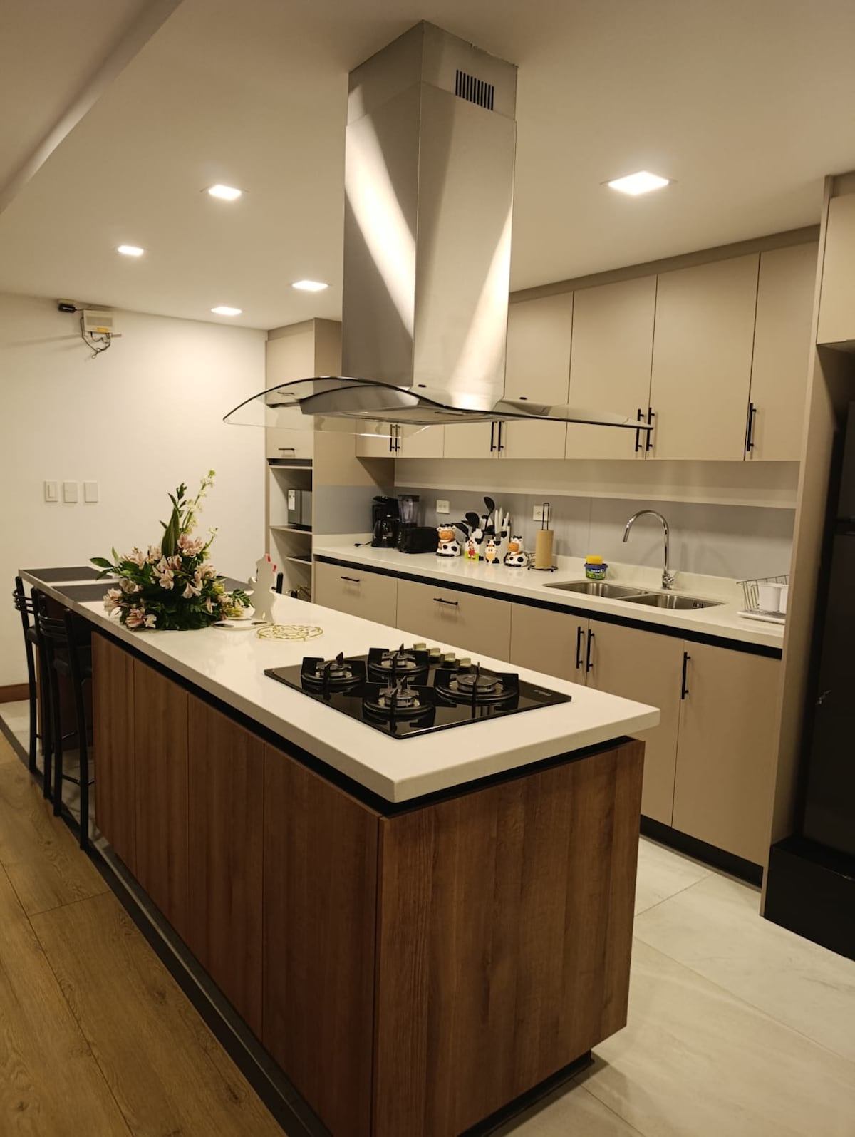 Absorbiere die Wärme und das Licht des offenen Wohnens mit luxuriösen 9-Fuß-Schlafzimmerdecken, einer 20-Fuß-Gewölbedecke mit Oberlicht im Gemeinschafts-/Küchenbereich und übergroßen Fenstern für einen ruhigen und erholsamen Aufenthalt in Cuenca. ⚡️ 24/7 heißes Wasser, WLAN und Strom für deine Geräte dank unseres netzgebundenen Backup-Batteriesystems. Hinweis: Einige Hochleistungsgeräte wie der Föhn und der Wasserkocher funktionieren bei Stromausfällen nicht.