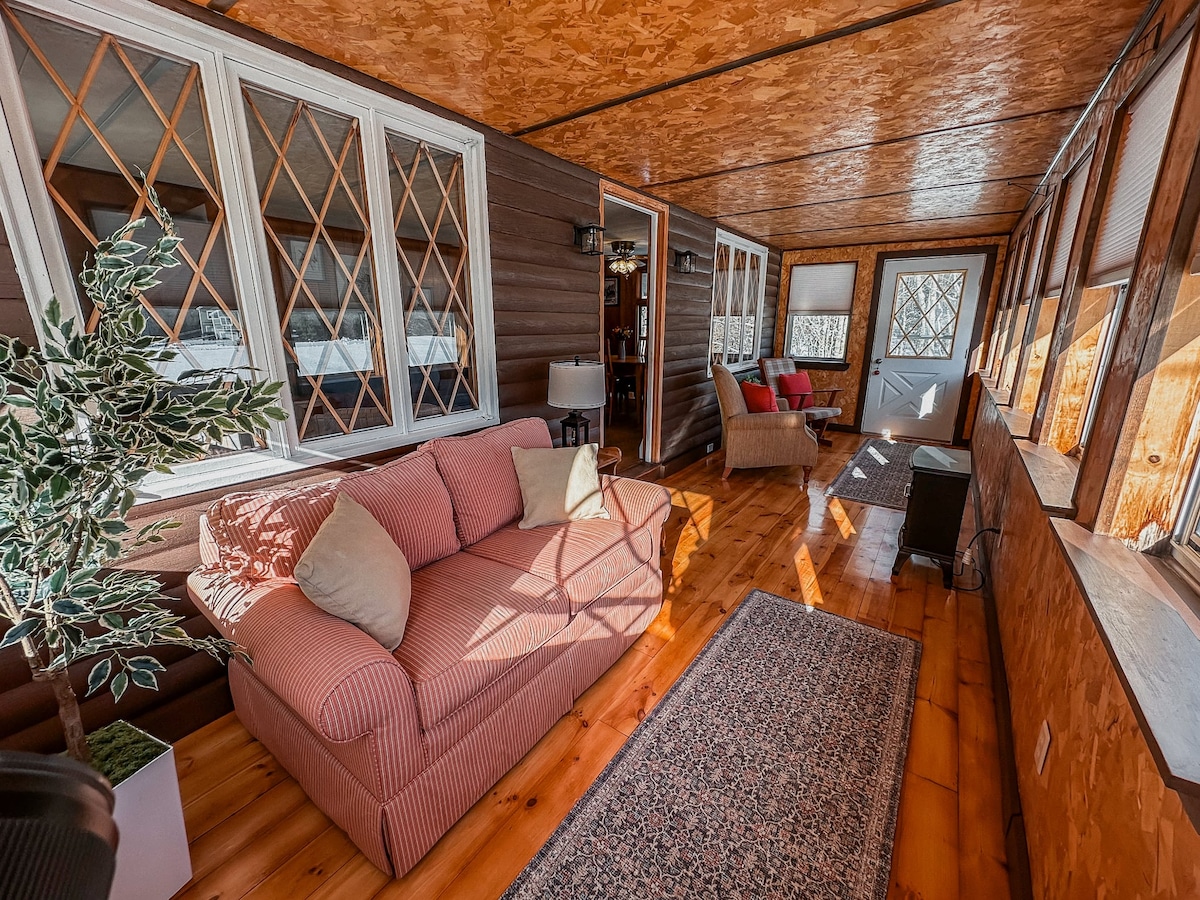 Peaceful chalet nestled beside our maple woods in Southern Maine. Upstairs queen suite TV, tea/coffee nook with books and games; first-floor cozy bedroom with full bed. One full bathroom. Open concept living room, dining area, all-season porch with electric fireplace, fully stocked kitchen, and washer/dryer for guest use. Hospitals, shopping, beaches and mountains about 30 minutes away. Visit our sugar shack just down the road during March maple season and enjoy beautiful fall foliage.