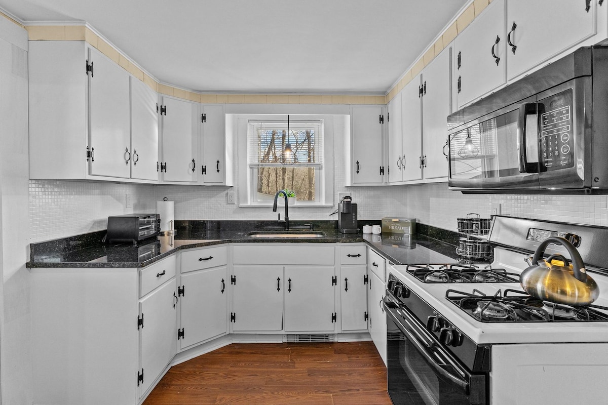 Willkommen in unserem charmanten Ferienhaus am See mit 3 Schlafzimmern in Mendon, MA, wo jeder Sonnenaufgang den Himmel mit atemberaubenden Farbtönen über ruhigem Wasser malt. Bietet Platz für 6 Gäste, ideal für Familien oder Paare, die Ruhe suchen. Genieße Kaffee am See, Angeln, Kajakfahren und Abende an der Feuerstelle. Wir sind tierfreundlich, also kannst du deine Hunde gerne mitbringen. Wenn du mehr als einen Hund hast, lass es uns bitte wissen. Günstig gelegen in der Nähe von Restaurants und Sehenswürdigkeiten. Jetzt für einen magischen Kurzurlaub buchen!