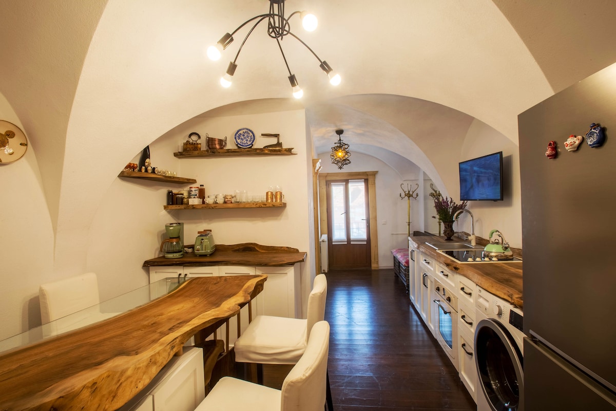 Die Wohnung befindet sich in einem alten Gebäude und gibt dir das Gefühl, tatsächlich in einem authentischen altmodischen (original Holzboden, Fenster und Holzofen), aber komfortablen und gemütlichen Haus in Schäßburg zu leben, wie es früher war. Das Zimmer ist geräumig und hat eine charmante Atmosphäre mit rumänischen Dekorationen und die Küchenzeile hat alles, was du zum einfachen Kochen benötigst. In der Nähe der Wohnung findest du das Stadtzentrum, die Zitadelle, Restaurants und Lebensmittelgeschäfte. Genieße deinen Aufenthalt!