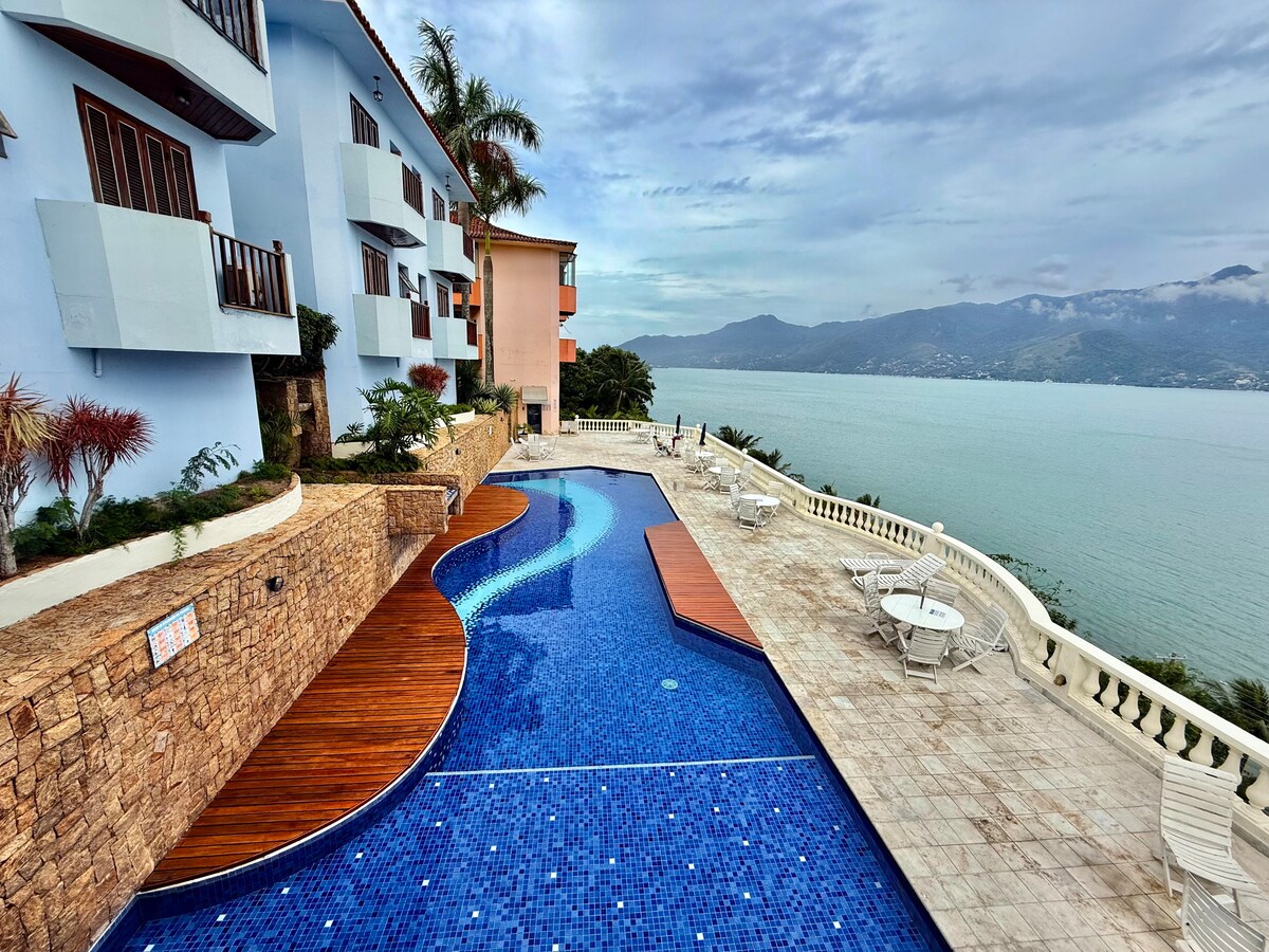 Imperdível, localizado em frente a praia do Perequê, ao lado do Shopping. Orla e a ciclovia passam em frente! Flat totalmente equipado (utensílios detalhados no anúncio) e com infraestrutura de hotel. Dispõe de maravilhosas piscina aquecidas adulto e infantil, quadra de tênis, sauna, sala de ginastica e sala de jogos. Próximo a restaurantes, bares, quiosques de praia, mercado, farmácias, bancos e muito mais. Estacionamento incluso. Reserve e experimente a energia incomparável da Ilhabela !!!