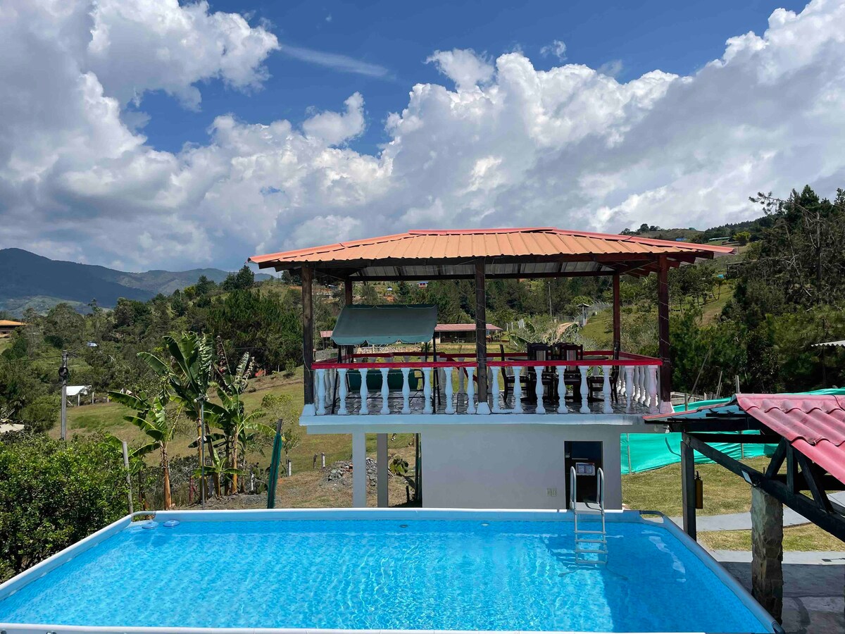 Finca Villa Maju: tu refugio en la naturaleza ¿Buscas un lugar para desconectarte y disfrutar al máximo? En Finca Villa Maju encontrarás el equilibrio perfecto entre comodidad, diversión y descanso. Lo que te espera: . Jacuzzi y baño turco. • Sala comedor y cocina equipada para sentirte como en casa. • 2 habitaciones acogedoras con camas y camarotes. • Piscina refrescante y mirador con vistas únicas. • Diversión asegurada: juego de sapo, mesa de ping pong y billar pool.