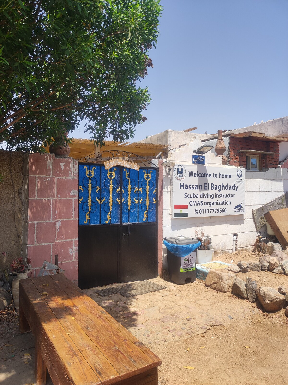 Das Whitehouse dahab ist eine atemberaubende Villa im traditionellen nubischen Stil auf 900 m ² Land direkt am Strand. Ruhiger Ort, an dem du die Wellen aus jedem Schlafzimmer hören kannst. Es ist für 2 bis 6 Personen geeignet. Meerblick von jedem Schlafzimmer und Wohnzimmer. Die Villa ist geräumig und gut ausgestattet. Die große Küche/Esszimmer verfügt über einen Kühlschrank/Gefrierschrank, Geschirrspüler, Heißluftfritteuse, Backofen, Saftpresse, Mixer, Toaster, Wasserspender heiß kalt. Es ist auch mit einer Waschmaschine im Badezimmer im ersten Stock ausgestattet. Das Wohnzimmer verfügt über Sat-TV und Klimaanlage. In kalten Nächten hat man einen funktionierenden Kamin im Wohnzimmer. Die Höhe der Decke ist über 4 Meter mit Ventilatoren ausgestattet. Die Wände sind 40 Zentimeter breit mit Holzbalken oben. Das Hauptschlafzimmer hat eine sechs Meter hohe Kuppel mit blauen Fenstern, von deinem Bett aus kannst du das Meer und die roten Berge Saudi-Arabiens sehen, die dem roten Meer seinen Namen geben. Riesiger Einbauschrank, ein Tisch und Stuhl und viel Stauraum. Das zweite Gästezimmer im Erdgeschoss verfügt über eine 4-Meter-Kuppel, eine Couch mit Tisch und Stuhl und einen eingebauten Kleiderschrank. Das dritte Gästezimmer, das Studio ist auch dem Meer zugewandt, es ist riesig ( 8 mal 4 Meter) mit einem Wandspiegel und Holzboden. Gäste, die hier übernachten, müssen das Badezimmer im Erdgeschoss oder im Obergeschoss nutzen. Dahab ist ein Wind- und Kitesurfer-Hotspot und zum Schnorcheln und Tauchen geeignet. Zwei Gehminuten vom Westen entfernt befindet sich der Hauptplatz der Beduinenstadt Assalah mit Supermärkten, Apotheken, Obst- und Gemüsemärkten und einer deutschen Bäckerei. Durch deine eigene Strandtür 50 Meter zu deiner Rechten erreichst du den bekannten Aalgarten-Tauchplatz und die Dahab-Promenade mit vielen ausgezeichneten Restaurants, Strandbars und Tauchzentren.