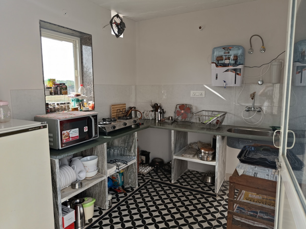 Enjoy a comfortable and stylish stay in this modern, spacious 1BHK luxury apartment, thoughtfully designed to accommodate up to 4 guests. A comfortable king-size bed, while the living area includes a king-size sofa cum bed, making it ideal for families, couples, or small groups. The apartment offers two premium bathrooms, ensuring convenience and privacy. A fully equipped kitchen allows you to cook with ease and step outside to the peaceful outdoor sitting area, perfect for morning tea .