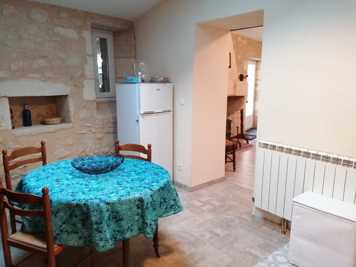 Guten Tag, Ich begrüße Sie bei mir zu Hause, in einem charmanten Nebengebäude des Hauses, für einen Aufenthalt im Herzen der Weinberge im Dorf Grézillac, 15 Minuten von Saint Émilion entfernt. Das Haus besteht aus einem großen Wohnzimmer, einer Küche, einem Schlafzimmer mit Badewanne und einem Garten. Ideal gelegen, zusätzlich zu den Weinlandschaften können Sie leicht nach Bordeaux, zum Bassin d 'Arcachon oder in die Dordogne gelangen. Bis sehr bald!