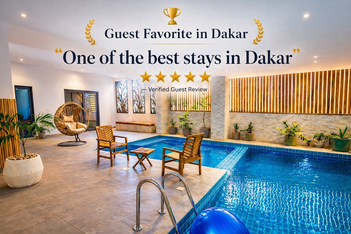 Willkommen in Bô Séjour, Ihrer gemütlichen und klimatisierten Wohnung in der Cité Africa, nur 5 Minuten vom Strand von Ouakam entfernt. Eingebettet in eine seltene Wohngegend der ruhigen und sicheren Hauptstadt. Diese sorgfältig eingerichtete Wohnung bietet Ihnen die Wärme der senegalesischen Gastfreundschaft mit modernem Komfort. In der Nähe des Renaissance-Denkmals und des Leuchtturms von Mamelles, ideal für Paare, Reisende und digitale Nomaden, die Stil, Ruhe und Verbindung suchen.