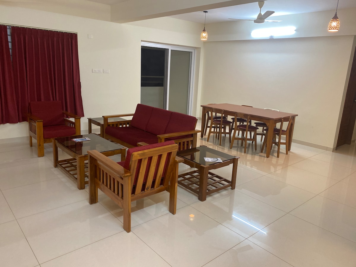 Die Lage: 100 m von der Hauptstraße entfernt. 10 Kilometer vom Flughafen entfernt. 4 km vom KSRTC-Busbahnhof entfernt. 8 km vom Bahnhof entfernt. Die Unterkunft: Komfortable, gut eingerichtete Wohnung mit allen erforderlichen Amnetien. 1 Klimaanlage in jedem Schlafzimmer. Interaktion mit Gästen: Gastgeber wohnen in der Nähe; hilfreich bei Anforderungen jeglicher Art. Auch telefonisch verfügbar
