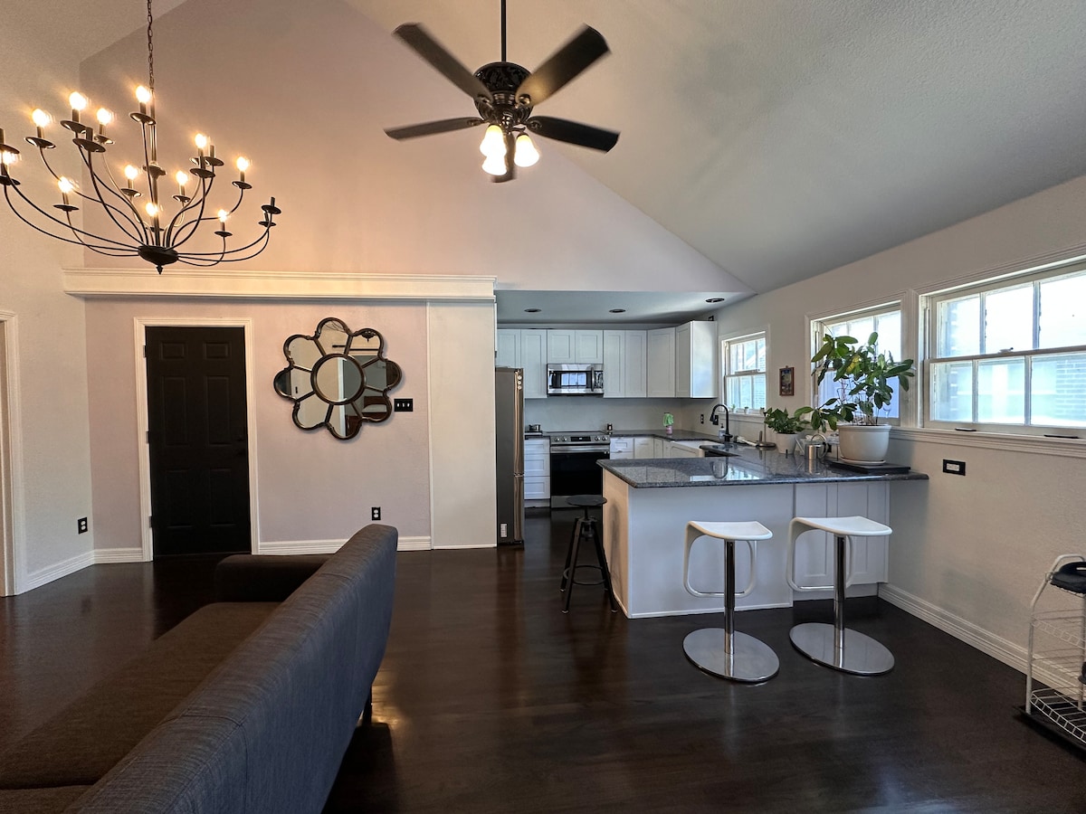 Genieße einen Aufenthalt in unserer luxuriösen Studio-Wohnung. Diese angebaute private Einheit wurde 2022 erbaut und von Grund auf entworfen, um deine vielen Bedürfnisse zu erfüllen. Geschäftsreise? Wir haben einen Arbeitsplatz mit einem maßgefertigten Zedernschreibtisch, speziellen Steckdosen und liegt zentral nur 15 Minuten vom Flughafen entfernt. Romantischer Kurzurlaub? Das komfortable Queensize-Bett, die Küche und die zwei Duschköpfe bedeuten, dass du nicht gehen musst, wenn du nicht willst. Der Sichtschutzvorhang kann auch zugezogen werden, damit ein Partner ausschlafen kann.