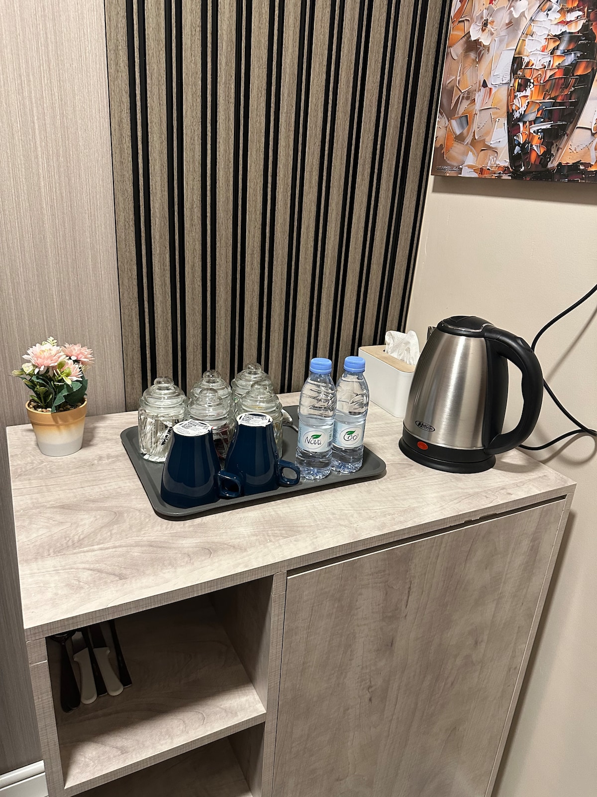 Entdecke einen unverwechselbaren Aufenthalt in einer komfortablen Wohnung in der Stadt Al Khobar. Die Wohnung verfügt über mehrere Merkmale: 1. Intelligenter und sicherer Zugang durch ein intelligentes Türschloss. 2. Ein schöner Balkon mit Aussicht. 3. Eine Kaffeeecke mit einer Kaffeemaschine, einer Mikrowelle und einem kleinen Kühlschrank. 4. Ein 4K-Smart-Bildschirm. 5. Schnelle 5G-Internetverbindung. 1. Bahrain Bridge – innerhalb von 5 Minuten. 2. Rashid Mall – 10 Minuten 3. Die Uferpromenade – 5 Minuten