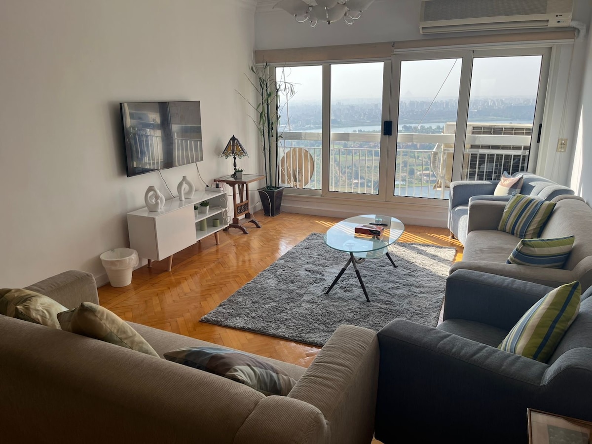Hab Spaß mit der ganzen Familie und deinen lieben Freunden (Gästen) in dieser stilvollen Unterkunft. Toller Nilblick Luxus 3 Master-Schlafzimmer, von denen aus du den Sonnenuntergang & die Pyramiden genießen kannst. Genieße ein stilvolles Erlebnis in dieser zentral gelegenen Unterkunft in neuen Türmen, die du zusammen mit deinen schönen Gästen genießen kannst, die sich im Inneren des stilvollen Hauses völlig wohlfühlen. # 10 Minuten vom Stadtzentrum entfernt (Kairo-Museum und Burj von Kairo ) # 12 Minuten von Al Mohandessin # 20 Minuten von den Pyramiden entfernt