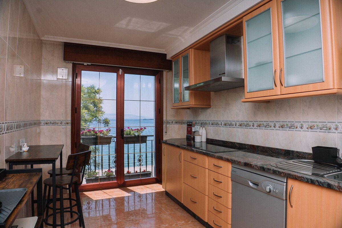 Garantiert von Empresa @MICASADEVACACIONES Renovierte Wohnung am Wasser mit Blick auf die Cangas-Promenade und zwei Minuten vom Strand Rodeira entfernt. Es besteht aus zwei Schlafzimmern - eines mit einem Doppelbett und das andere mit zwei Einzelbetten, die getrennt werden können -, Badezimmer mit Dusche, Wohn-Esszimmer mit Schlafsofa von 150 cm und ausgestatteter Küche Die privilegierten Ausblicke auf die Ría de Vigo sind eine Show, die sich den ganzen Tag über und mit den Jahreszeiten ändert.
