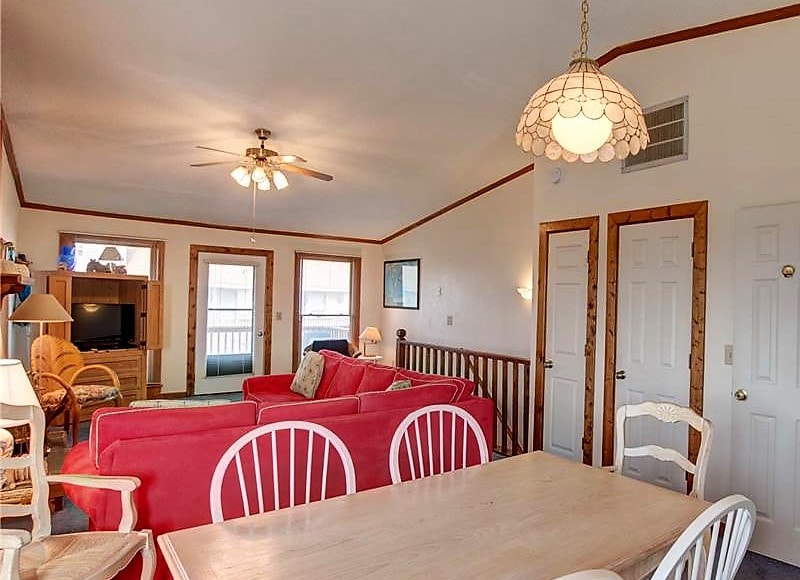 Eigentumswohnung am Strand im Croatan Surf Club! Zentral gelegen am OBX in Kill Devil Hills. Der Strand ist nur wenige Schritte von deinem Zimmer entfernt, der Außenpool und der Whirlpool sind vom 20.04.26 bis zum 31.10.26 geöffnet, der Innenpool und der Whirlpool sind das ganze Jahr über geöffnet, der Außenbalkon mit kleinem Meerblick und Blick auf das Wright Brothers Monument und kostenlose Parkplätze auf dem Gelände. Dies ist eine 3-Bett-Wohnung (2 Könige, 1 Queensize-Doppelbett) und 3 Badezimmer. Dies ist ein einziger Grundriss auf der obersten Etage. Es gibt Aufzüge in der Eigentumswohnung.