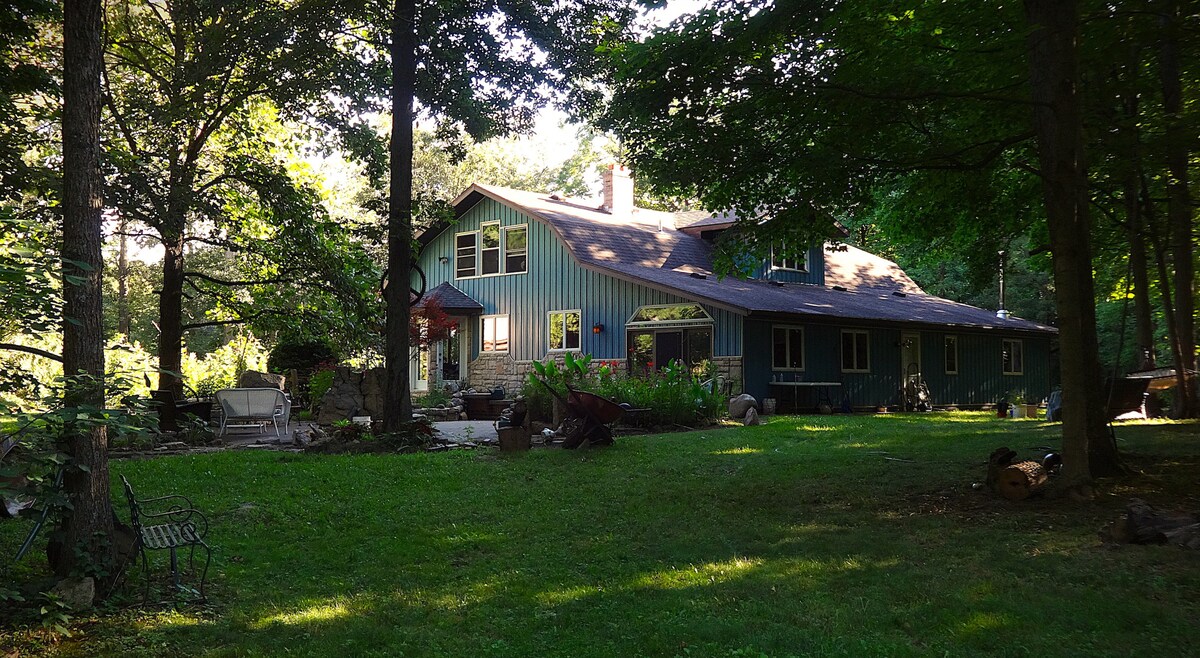 Entspann dich in dieser einzigartigen, privaten und rustikalen Unterkunft mit 26 bewaldeten Hektar und einer wunderschönen parkähnlichen Umgebung. Begib dich in einem alten Western Saloon mit modernem Luxus auf eine Zeitreise. Bar-Spiele in Hülle und Fülle. Schwimmfähiger, bestückter Teich zum Angeln. Tretboot, John-Boot, Angelruten, alle zur Benutzung bereit. Verliere dich bei einem Spaziergang auf mehreren Hektar bewaldeter Pfade. Die Tierwelt ist reichlich vorhanden. Genieße das Weingut die Straße hinunter oder einen Spaziergang an den Geschäften in Downtown Greenville. Klicke auf unsere Bio für weitere einzigartige Unterkunftsmöglichkeiten!