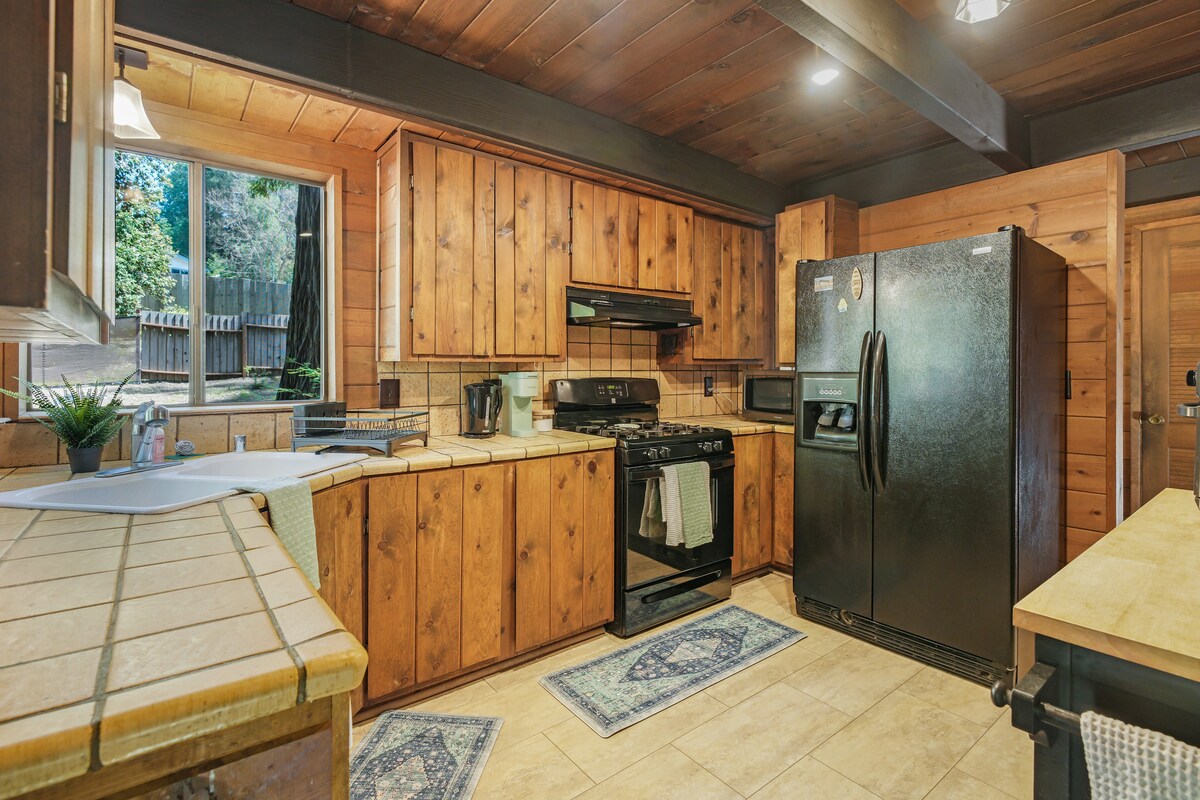 Der perfekte Aufenthalt für Abenteuerlustige und Entspannungsenthusiasten. (Genehmigung 251052) Entspanne dich bei Gartenspielen und Grillen, tanke Sonne auf der Terrasse oder entspanne in einer Hängematte im Schatten der Mammutbäume. Mach es dir am Kamin gemütlich, genieße den Waldblick durch Oberlichter oder schau Filme auf der großen Leinwand. Erkunde Wanderwege nur wenige Schritte entfernt, riesige Mountainbike-Strecken (10 Min.) oder gehe an den Strand und surfe (13 Min.). Gönne dir eine Weinprobe in einem lokalen Bergweinberg, der zwischen den Mammutbäumen liegt (5 Minuten).