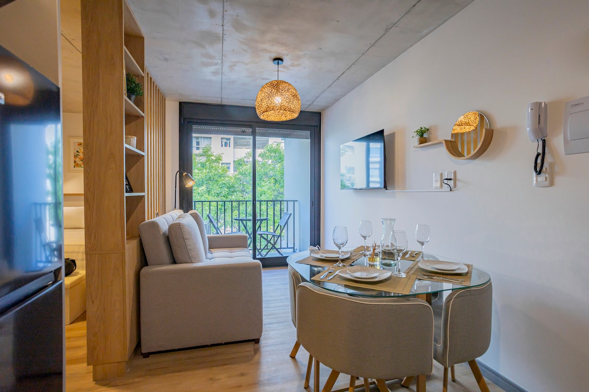 GenieĂen Sie ein stilvolles Erlebnis in dieser modernen Wohnung. Das Hotel liegt in einer privilegierten Gegend, einen Block von der Rambla und drei von der EinkaufsstraĂe und dem WTC entfernt, in der NĂ€he von Bars, Restaurants und mit einer unschlagbaren Verbindung zur ganzen Stadt; du wirst die Ruhe in einem GebĂ€ude mit AuĂenpool, Fitnessraum, Coworking-RĂ€umen und WĂ€scherei genieĂen, damit dein Aufenthalt komfortabel und sicher ist.