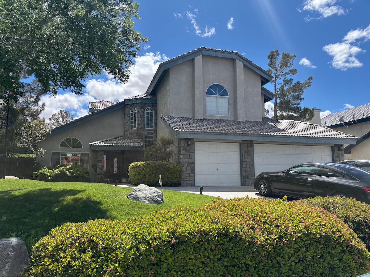 Zentral gelegen in der Nähe von Death Valley, Speedway und PrairieFire Trainingsgelände. Fünf Minuten vom Zentrum von Pahrump und etwa 50 Minuten von Las Vegas entfernt. Dein Aufenthalt in 4 Schlafzimmern (plus Bonusraum neben dem Hauptschlafzimmer). Es gibt 8 Betten, die aus 1 Kingsize-Bett, 3 Queensize-Betten und 4 Einzelbetten bestehen, mit 2 voll ausgestatteten Badezimmern und 1/2 Badezimmer neben der Waschküche. Voll ausgestattete Küche mit Essmöglichkeiten im Esszimmer, in der Küchenecke, an der Küchentheke und auf der hinteren Terrasse. Check-in rund um die Uhr Spa und Pool nur für Jugendliche (16+)