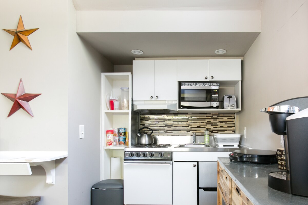 Genieße unsere gemütliche Kutschenhaus-Wohnung, die zwischen den Bäumen liegt und mit wunderschönem natürlichem Licht gefüllt ist. Diese Wohnung im 2. Stock wurde 2021 mit dunklen Eichenböden, hellen Quarz-Arbeitsplatten und einer Mischung aus modernen und Vintage-Möbeln gebaut. Die Kunstwerke in der gesamten Wohnung wurden von Bilderbuchillustratoren geschaffen. Die Geräte sind alle neu, einschließlich eines Geschirrspülers und einer Kombi-Waschmaschine/eines Trockners. Ausreichend Parkplätze an der Straße vorhanden und dieses Haus befindet sich nur eine halbe Meile von der Innenstadt von Decatur entfernt.
