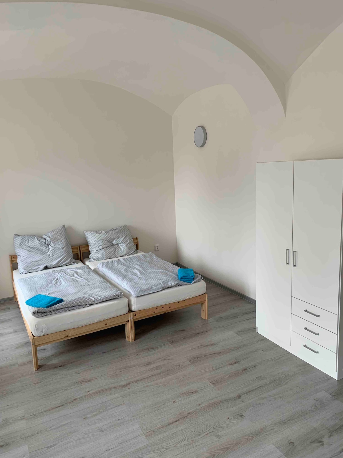 Komfortable Wohnung Wilda mit zwei Schlafzimmern, komfortabel für 4 Personen, kann ein Schlafsofa für zwei weitere Gäste vorbereiten. Separates WC, Dusche, Küchenzeile, Wohnungen sind komplett mit allem ausgestattet, was du benötigst, Geschirr, Glas, Bettwäsche, Handtüchern, Smart-TV mit Netflix, Kühlschrank, Herd, Wasserkocher, Mikrowelle, WLAN und mehr. Die Privatparkplätze an der Unterkunft nutzt du kostenfrei. Wir möchten dir ein Frühstücksmenü für 159,-CZK Person/Tag anbieten.