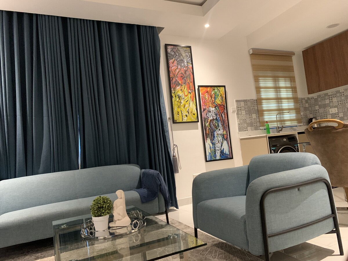 Willkommen in den Paabi Suites – Ein Apartment mit einem Schlafzimmer in der Nähe der Port Harcourt Mall, das für Familien, Paare und Alleinreisende konzipiert wurde, die Wert auf Komfort und Sicherheit legen. Genieße rund um die Uhr Strom, schnelles WLAN und stilvolle Innenräume. Schlafe auf einem Queensize-Bett, garantierte Unterhaltung mit einem Smart-TV mit Netflix und einer voll ausgestatteten Küche, die für Mahlzeiten wie zu Hause bereitsteht. Das Hotel liegt in einer geschlossenen, sicheren Umgebung mit optionalem hauseigenem Koch, Wäscherei und Abholung vom Flughafen auf Anfrage. dein wahres zweites Zuhause.