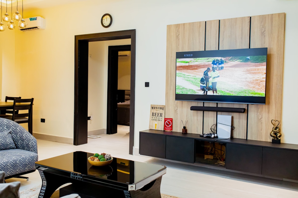 Genieße eine luxuriöse 2-Zimmer-Wohnung in Trans Amadi, Portharcourt. Diese Wohnung ist ideal für lange und kurze Aufenthalte. Perfekt für Familien, Gruppen und Geschäftsreisende. Entspanne dich am erhöhten Außenpool; genieße Spiele und Sport mit Billardtisch und Fünfer-Fußballplatz, bleibe mit Klimaanlage in jedem Raum cool, schaue deine Lieblingssendungen auf Netflix, genieße schnelles WLAN und zuverlässigen 24-Stunden-Strom. Es ist mit einem Parkplatz gesichert und nur wenige Minuten vom Fitnesscenter, Restaurants und Einkaufszentren entfernt.
