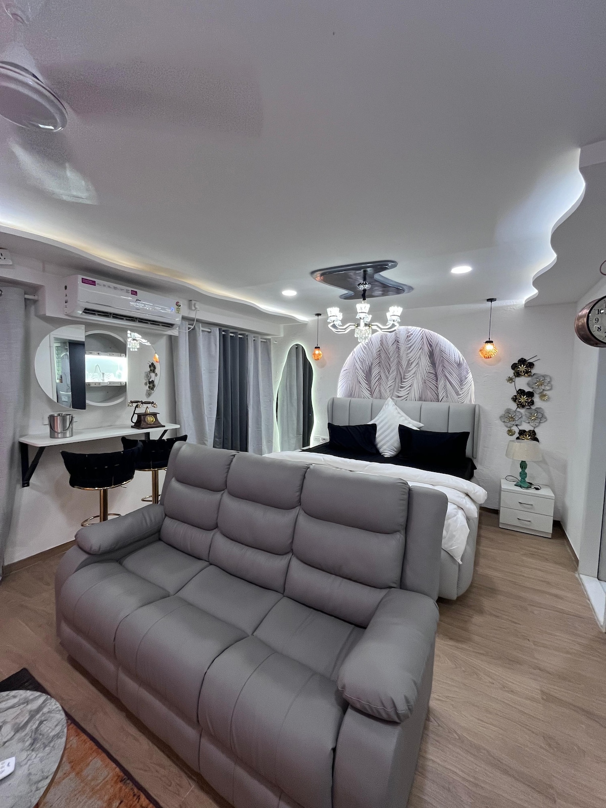 Willkommen in unserem gemütlichen Riverside 1BHK mit Bergblick im Lodha Belmondo Golf Resort. Genieße lange Spaziergänge rund um den immergrünen und ruhigen Golfplatz und das Ufer des Flusses Pawana. Genieße deinen Aufenthalt im besten modernen Resort von Pune.