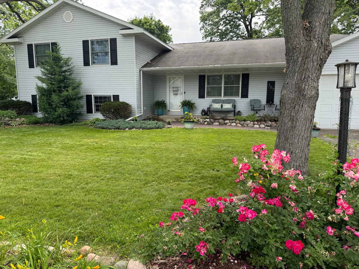 Gemütliches, ruhiges, zugängliches Haus am Genfer See mit großem offenen Wohnbereich, gewölbten Decken, großem 1 Hektar Waldgrundstück. 3 Minuten vom Strand, 5 Minuten zum Genfersee und zur Williams Bay, 2 Minuten zu einem lokalen Lebensmittelgeschäft im Wisconsin-Stil. Willkommen im Peacock Cottage! Das Hotel liegt auf einem tiefen, privaten Grundstück, umgeben von Wäldern, also ist es toll, ohne Verkehr in der Nähe loszulassen. Wir sind super in gemütlichen Unterkünften und lieben es, Räume zu schaffen, die erholsam und lustig sind.
