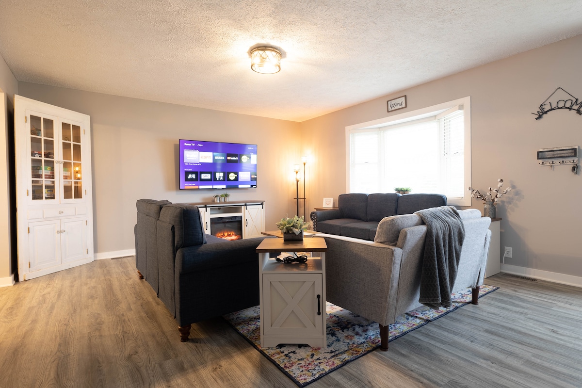 Willkommen in unserem Zuhause in Muncie! Tritt auf die einladende Veranda und in einen geräumigen Rückzugsort, der sich perfekt für den Besuch von Familie, Freunden oder dem Campus eignet. Genieße eine voll ausgestattete Küche und einen Essbereich sowie ein gemütliches Wohnzimmer mit Stauraum. Zwei große Schlafzimmer bieten viel Platz — eines hat einen Schreibtisch zum Arbeiten oder Lernen — und beide haben große Schränke. Das Badezimmer verfügt über ein Doppelwaschbecken und eine Badewanne/Dusche-Kombination. Egal, ob du wegen Ball State, der Innenstadt oder einfach nur wegen der Stadt hier bist, du wirst es lieben, hier zu übernachten.