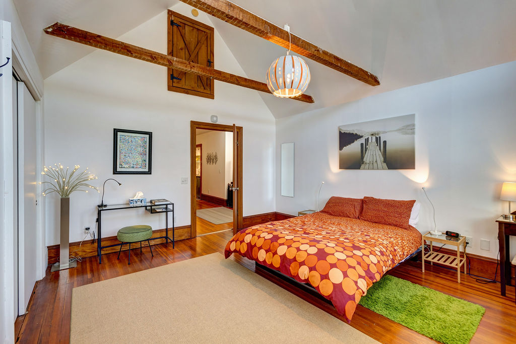 Im Herzen der Catskills und nur 2,5 Autostunden von New York City entfernt, kannst du dich in den perfekten Herbsturlaub zurückziehen, wo du dich wieder mit der Natur verbinden und die ruhige Schönheit der Jahreszeit genießen kannst. Dieses historische Juwel wurde kürzlich restauriert und verbindet sein Sägewerk-Erbe mit modernem Luxus, darunter ein Nest-Thermostat, smarte Lautsprecher, schlüsselloser Zugang und schnelles WLAN. Die ursprüngliche freiliegende Pfosten- und Balkenkonstruktion und das skandinavisch inspirierte Design sorgen für eine einzigartige und gemütliche Atmosphäre.