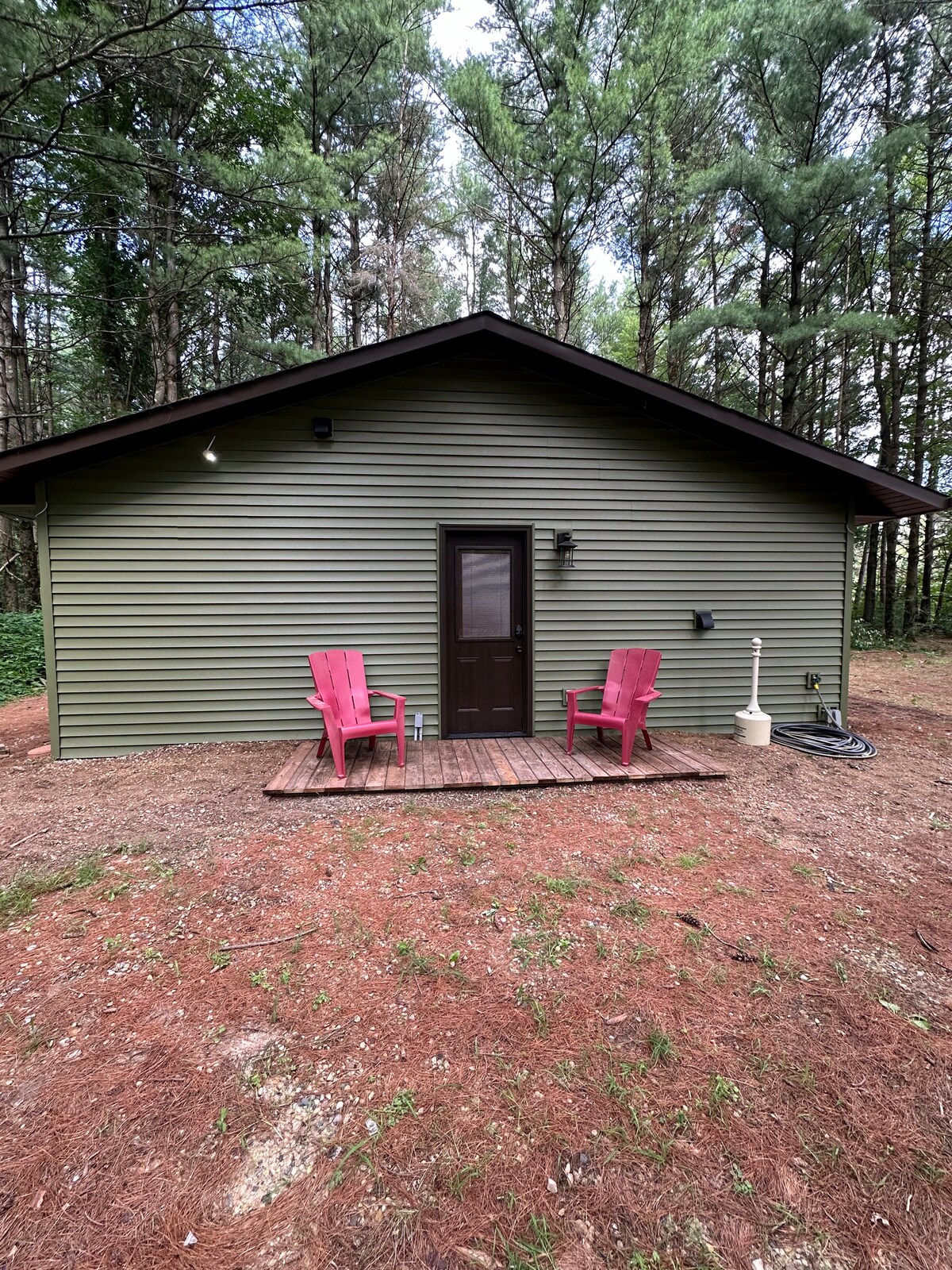 Besuche die Gegend von Wisconsin Dells und entspanne dich in einem von der Natur inspirierten Chalet vorne und einem A-Rahmen-Haus hinten. Das Hotel liegt 10 Minuten vom Stadtzentrum von Wisconsin Dells in der Nähe des Fawn Lake entfernt. Dieses einzigartige Zuhause ist wirklich ein Kunstwerk, das absichtlich für Gäste entworfen und eingerichtet wurde, damit sie es genießen und sich davon inspirieren lassen können. Genieße deinen Morgenkaffee auf der großen Terrasse oder sitze am Lagerfeuer, während du die Tierwelt beobachtest und deine Dells-Abenteuer planst.