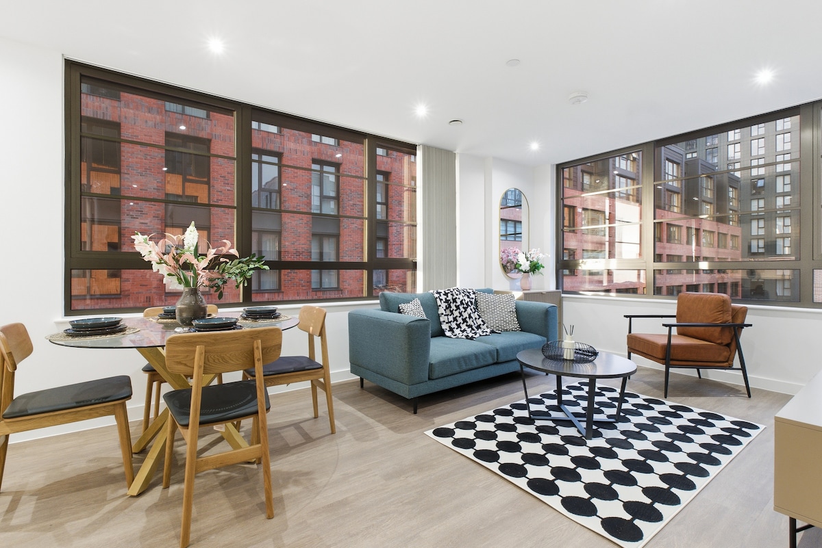 Stilvoll, zentral und nagelneu! Deine urbane Oase erwartet dich in dieser hellen, loftartigen 2-Zimmer-Wohnung im Herzen von Digbeth. Raumhohe Fenster durchfluten den Raum mit Licht, während Premium-Annehmlichkeiten – 55-Zoll-Smart-TV, voll ausgestattete Küche und ein spezieller Arbeitsbereich – ihn perfekt für Arbeit oder Freizeit machen. Warum hier bleiben? ✔ Gehe überall hin, nur wenige Schritte von Cafés, Bars und Verkehrsmitteln entfernt ✔ Schlankes, modernes Design mit hochwertigen Oberflächen ✔ Frisch & makellos, gerade für Gäste geöffnet! Buche jetzt & lebe wie ein Einheimischer!