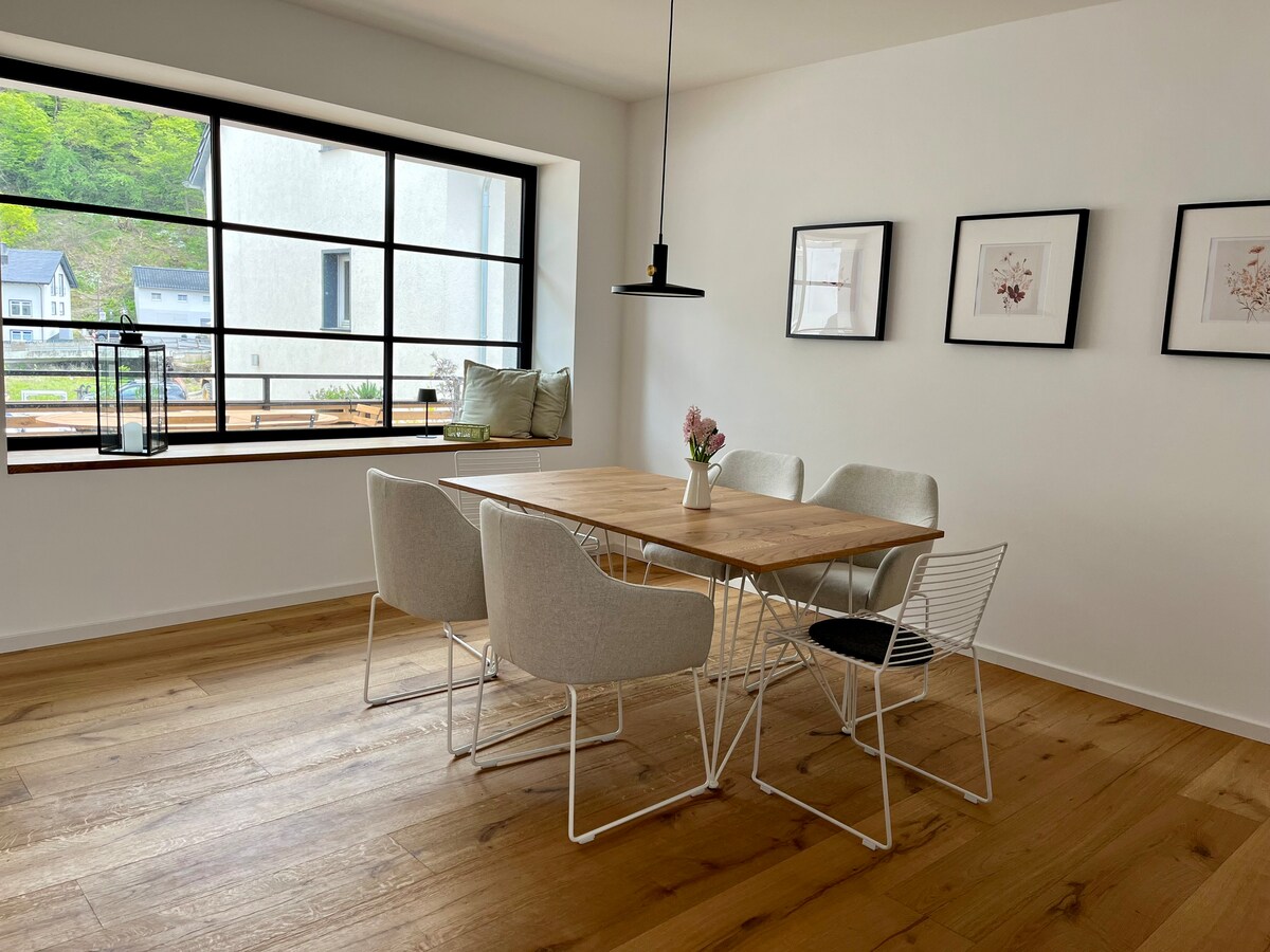 Das EIFEL QUARTIER anno 1846 gehört zu einem Ensemble von mehreren historischen Natursteingebäuden, die liebevoll restauriert wurden und anspruchsvollen Gästen ein tolles Naturerlebnis mitten im Herzen der Eifel bescheren, ohne auf entspannten Luxus verzichten zu müssen. Das EIFEL QUARTIER ist eine sehr individuelle, ursprüngliche Unterkunft mit modernem Pelletofen, sie geht über zwei Etagen und verfügt über eine E-Tankstelle. Hier wurde pures Wohnen in die Moderne überführt.