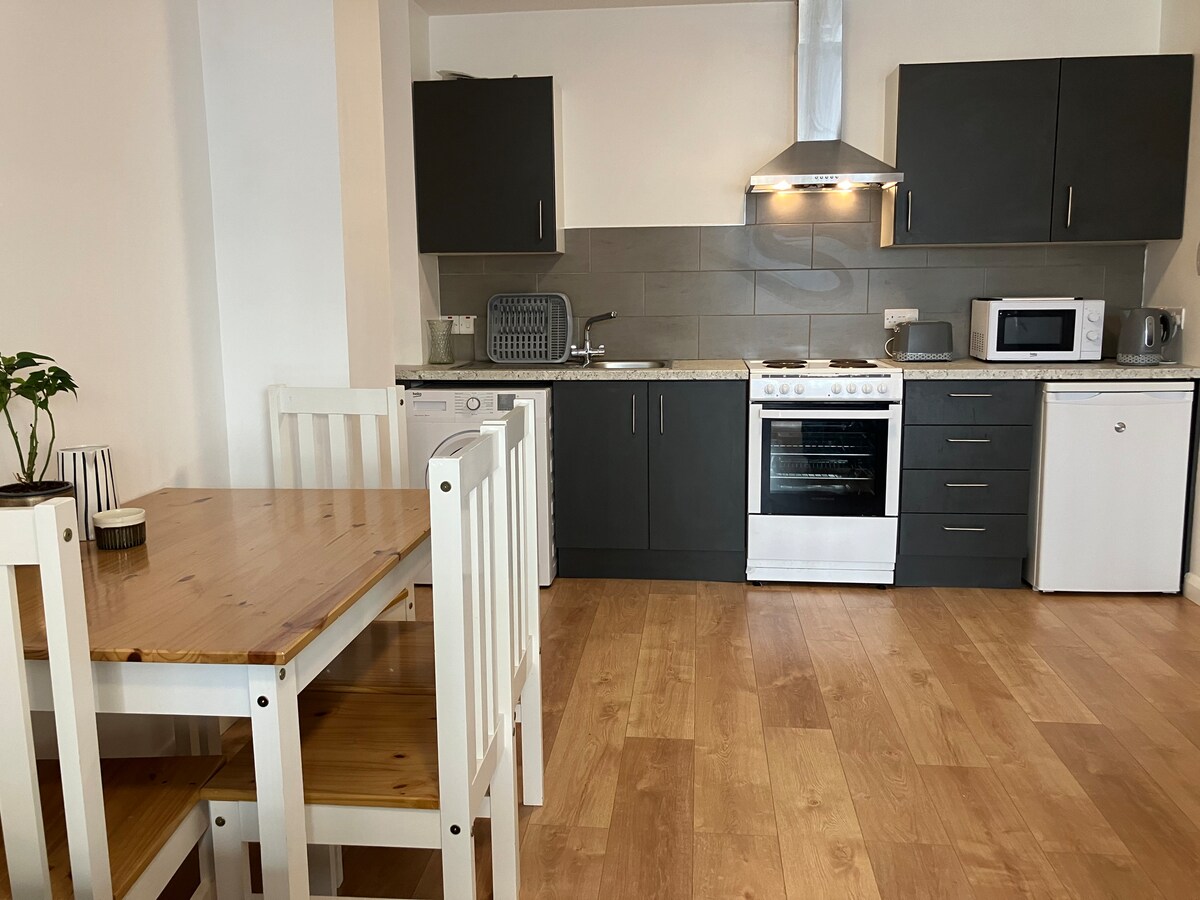 Erlebe einen gemütlichen Rückzugsort in unserer 1-Zimmer-Wohnung am malerischen Fluss Foyle. Perfekt für Alleinreisende oder Paare, verfügt sie über eine voll ausgestattete Küche mit Herd, Backofen, Mikrowelle, Wasserkocher, Kaffeemaschine und Waschmaschine. Genieße kostenfreies WLAN, eine PS5 und einen Smart-TV für deine Unterhaltung. Entspanne dich auf der gemeinsamen Dachterrasse mit herrlichem Ausblick. Günstig in der Nähe lokaler Sehenswürdigkeiten, Cafés, Geschäfte und öffentlicher Verkehrsmittel gelegen. Kostenloser Parkplatz inklusive. Buche jetzt für einen unvergesslichen Kurzurlaub!