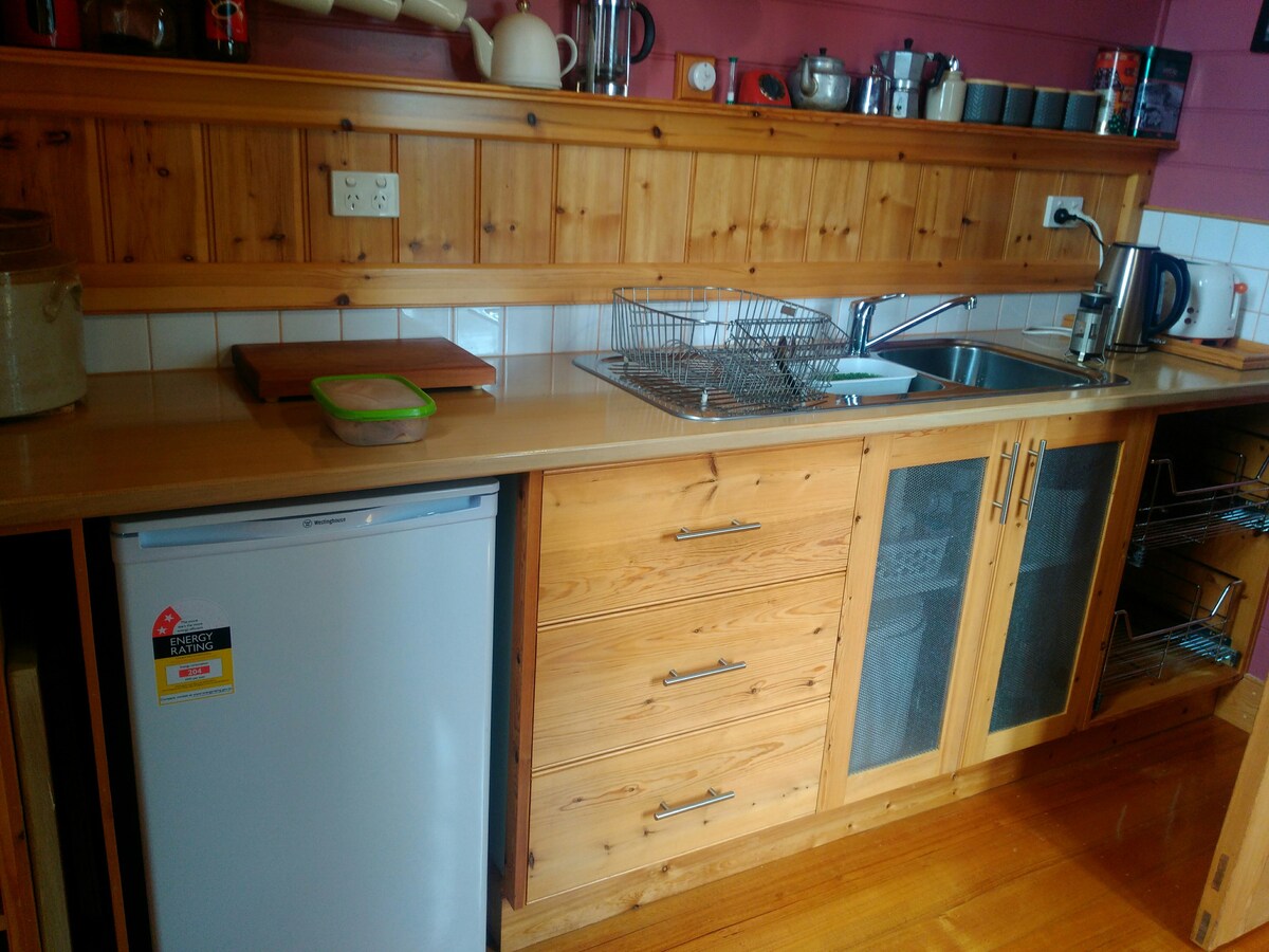 Entfliehe dem Alltag und entspanne dich. Eingebettet hoch auf einem Hügel mit Blick auf herrliche Sonnenaufgänge/-untergänge, sanfte grüne Hügel und Obstgärten, blauen Himmel und hoch aufragende grüne Gummibäume. Freundliche Wildtiere, funkelnde Sterne und ein maßgeschneiderter Whirlpool gehören dir, wenn du hier übernachtest. Schlafe auf luxuriöser Bettwäsche ein. Spüre die ruhige Stille des umliegenden tasmanischen Busches. Mache eine Pause vom Rennen des Lebens, ruhe dich aus, tanke neue Energie, verbinde dich mit der Natur und verjünge dich.
