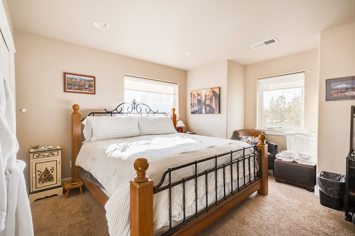 Private Quest-Suite in einem Haus auf einer Ebene. Du musst die genaue Anzahl der Gäste buchen, außer wenn du das Doppelbett für zwei Gäste anforderst (buche 3). Es ist 2,5 Meilen von der lauten Eisenbahn und Autobahn entfernt. 1,4 Meilen zum Pine Nursery Park; 2 Meilen zum Forum Shopping Center; 3,7 Meilen zur Innenstadt; 5,6 Meilen zum Old Mill Dist. & Hayden Amphitheater. 21 Meilen bis Sunriver; 26 Meilen bis Mt Bachelor. Zugang zum Highway 20 & 97. 2 Gehminuten vom Butler Market, Convenience Store & Tankstelle entfernt. Die Gäste schätzen die ruhige Nachbarschaft abseits der lauten Innenstadt.