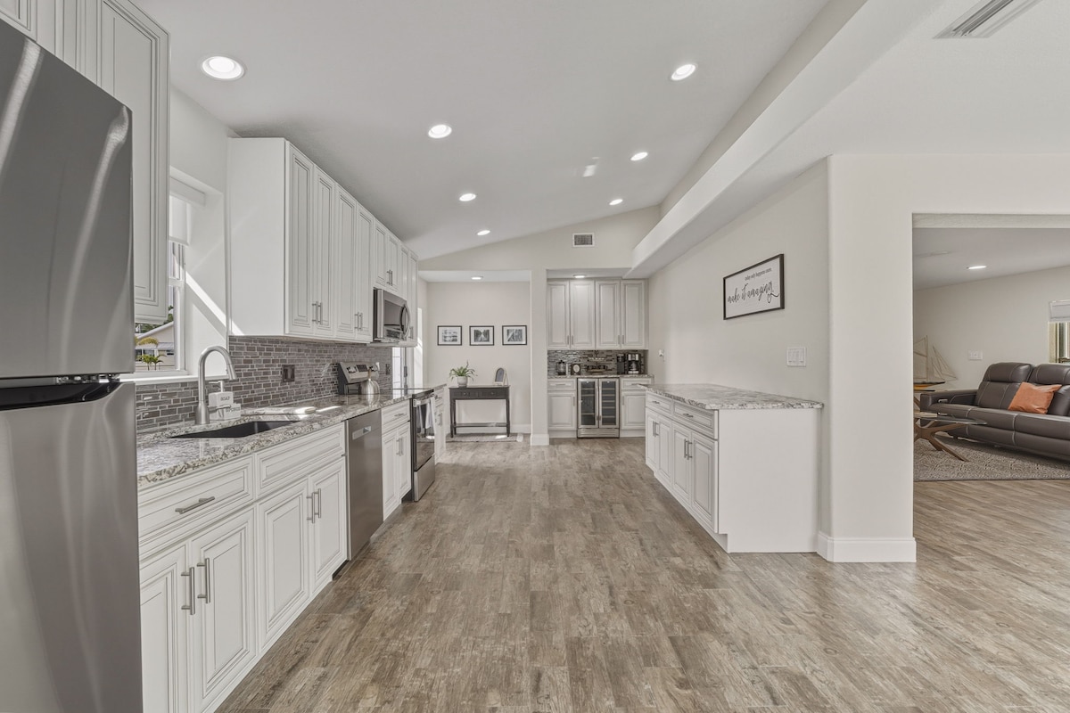 Fühle dich in unserem stilvollen, geräumigen und familienfreundlichen 4BR/2BA im Herzen von Arcadia wie zu Hause! Perfekt für Familien, Reiseprofis und längere Aufenthalte. Günstig in der Nähe von Restaurants, Einkaufsmöglichkeiten, Fitnessraum, Publix, Walmart und vielem mehr gelegen. Genieße hohe Decken, eine voll ausgestattete Küche, weiche Bettwäsche, Handtücher und eine Snack-Station. Der Hinterhof verfügt über ein Spielset, einen Grill, Sitzgelegenheiten und einen im Dunkeln leuchtenden Stance Sack Toss. Inklusive Indoor-Spiele! Ein entspannter, unterhaltsamer Aufenthalt erwartet dich.