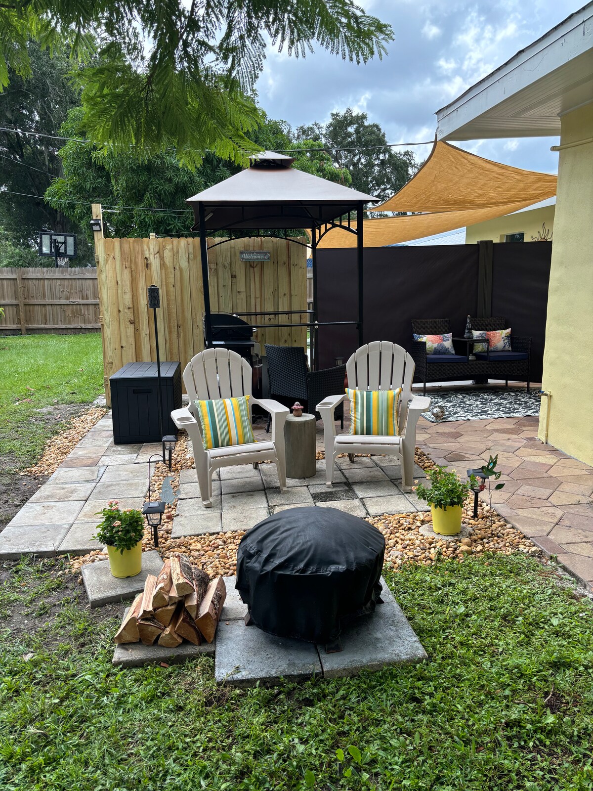 Entspanne dich mit der ganzen Familie in dieser ruhigen Unterkunft. Lustiges Tiermotiv, komplett renovierte Wohnung im Obergeschoss mit einem Schlafzimmer und Küche. Privater Eingang und Parkplatz in der Einfahrt. Private abgeschirmte Veranda im Obergeschoss mit Essbereich im Freien und Platz für Familienspiele oder Unterhaltung. Zugang zum Pool und zur Veranda (neu renoviert), Feuerstelle, Baumhaus, Schaukel und deinem eigenen Gasgrill für Gäste. Geräumiger Hinterhof in einer Sackgasse. In der Nähe von Einkaufsmöglichkeiten, Restaurants, Stränden, dem Flughafen und der Autobahn.